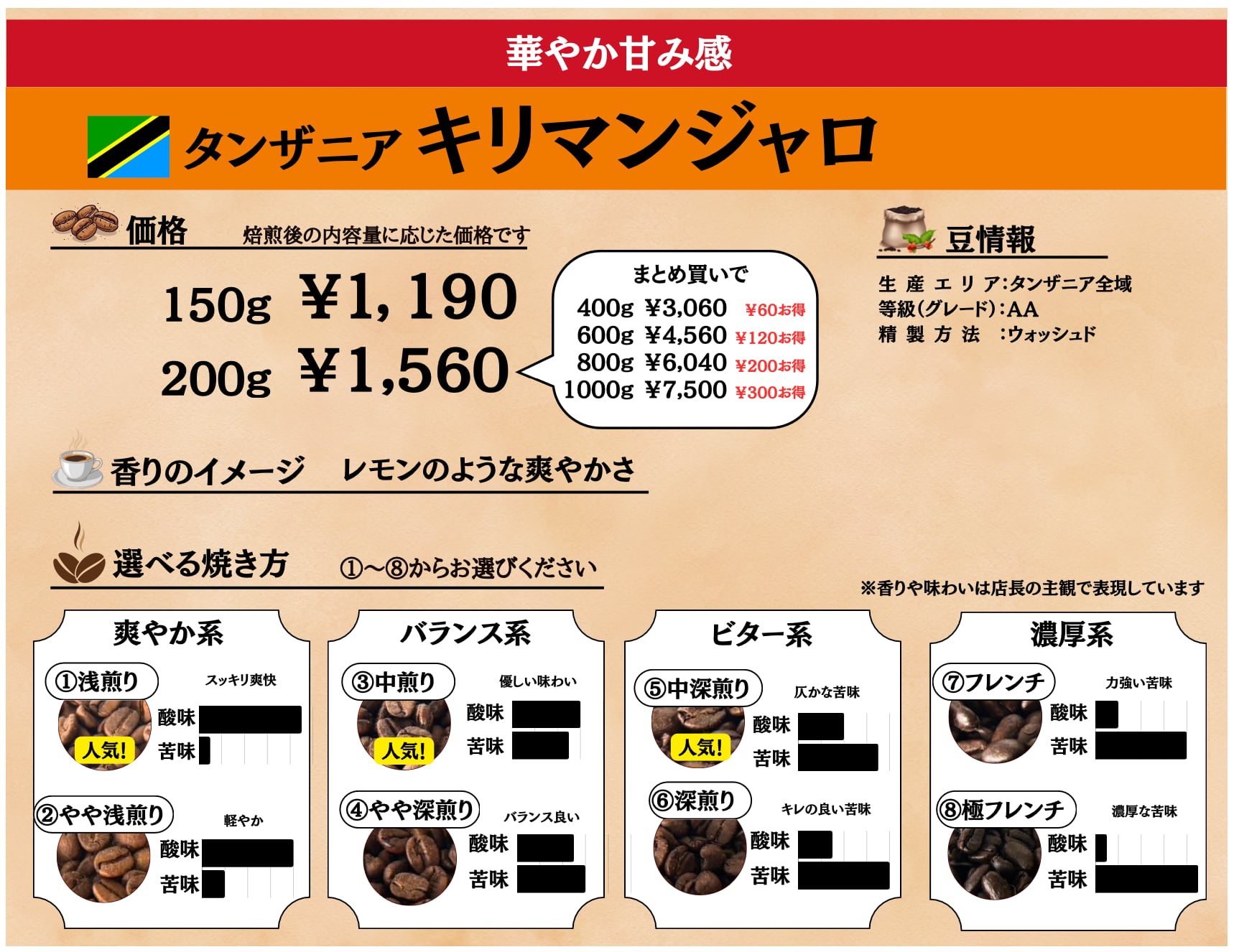 ◆商品名:タンザニアキリマンジャロ