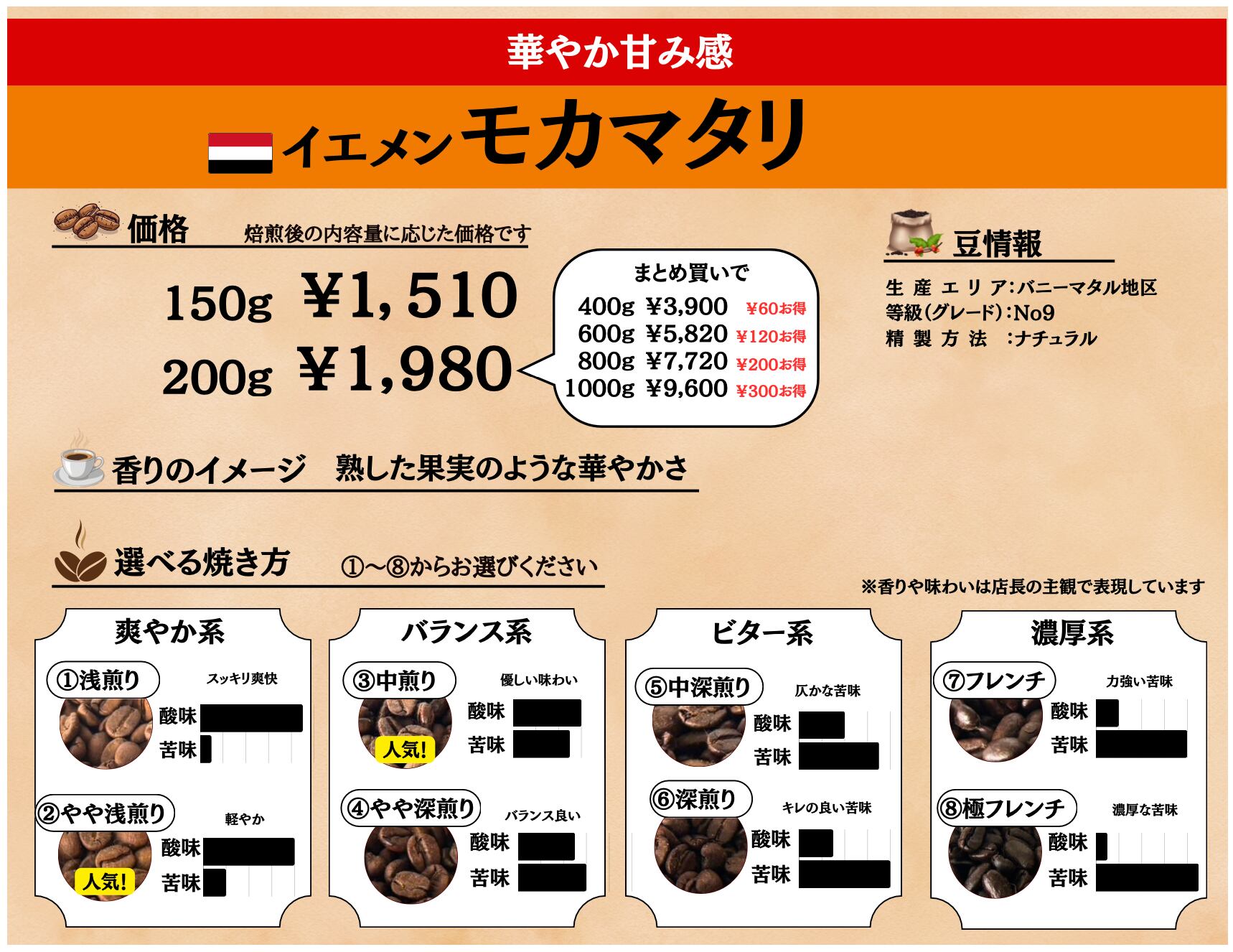 ◆商品名:イエメンモカマタリ